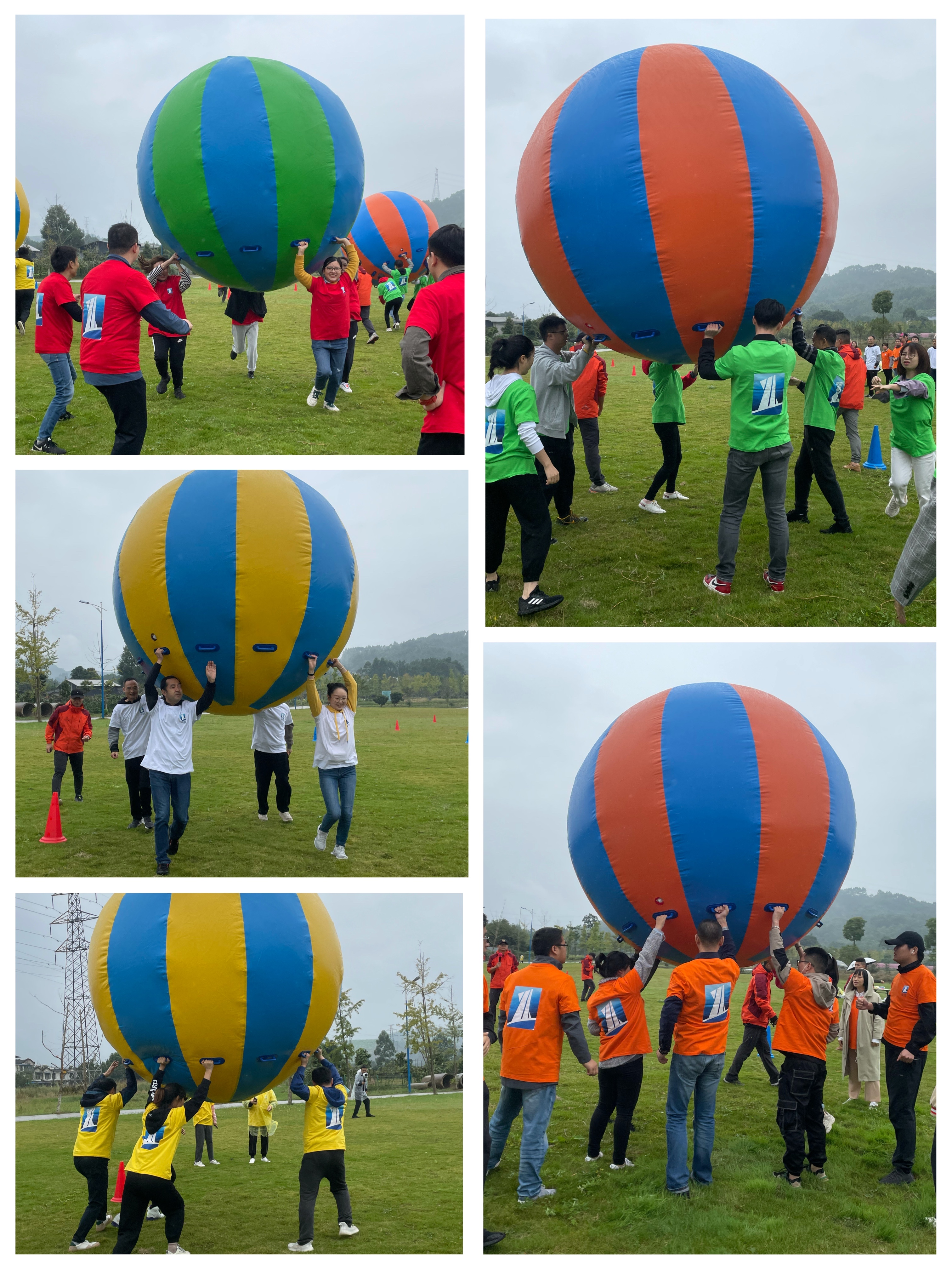 运转乾坤:团队成员四人为一组,同时托举起充气大气球,齐力向终点跑去,途中气球不可落地,速度最快的团队获胜。