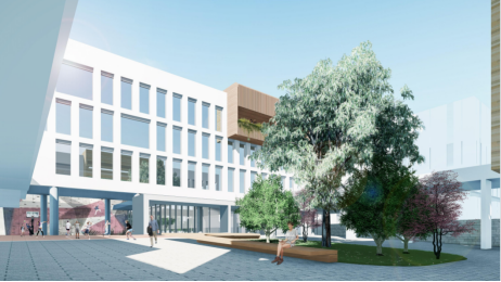 该园区整体规划思路为建筑采用围合式布局,并控制建筑高度,强化园区原有布局。在围合式布局下采用点式建筑灵活化解场地高差。 建筑立面颜色呼应川西大数据园区效果,以白色为主,与园区现有建筑和谐统一。在方形建筑体量 的基础上,用少量方块体玻璃幕墙及立面亮化,塑造“能量魔方 城市CPU”的科技感造型。提取大 园区立面元素,利用风雨柱廊将各栋建筑串联,在雅安多雨的气候条件下营造了有遮蔽的步行体系,同时形成了与现有园区统一整体的立面形象。依地势高低错落的线性风雨连廊,与各“能量魔方” 建筑体交相呼应,既与现有园区建筑统一和谐,又向城市展现出了丰富活泼而富有科技感的未来产业园新形象,进一步助力将雅安数据湖项目打造为全国“绿色载能产业大数据”示范基地,通过结合大数据与绿色载能产业,将雅安市塑造成为全国乃至全球能源经济数字化转型典范。
