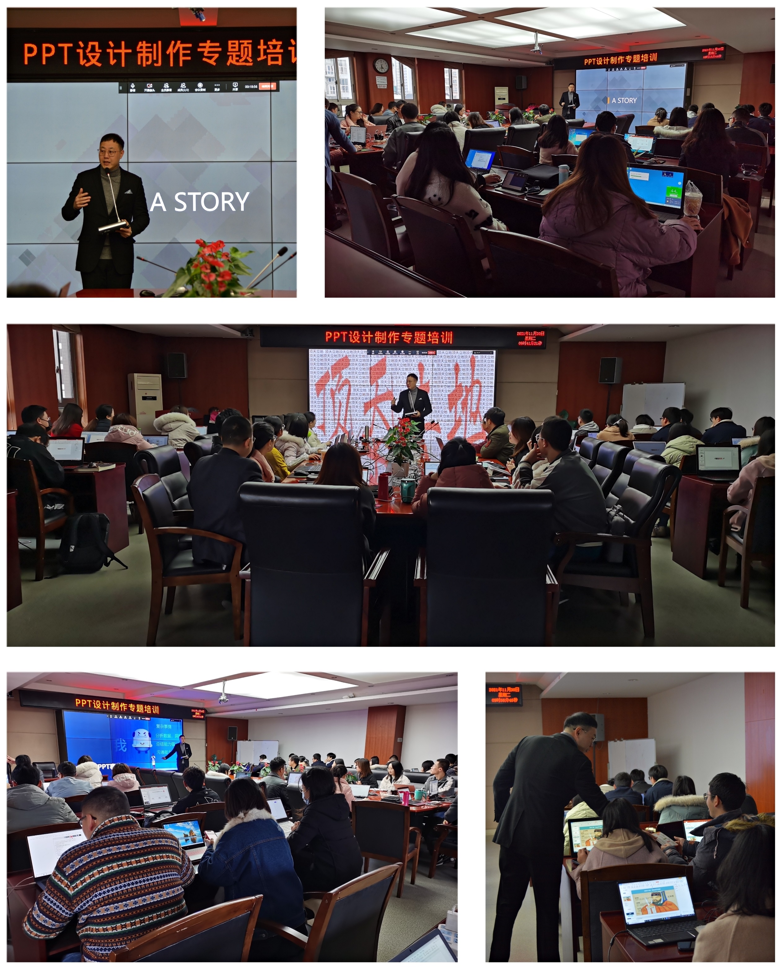 在培训会上,林老师重点从PPT的排版设计(包括点线面设计、留白对齐、排版套路、三明治版式)、PPT的逻辑构思、PPT文字的设计提炼、页面美化、演示汇报等几方面做了重点讲解,并现场带领大家实际操作,在实战中加深大家对知识点的理解和运用。