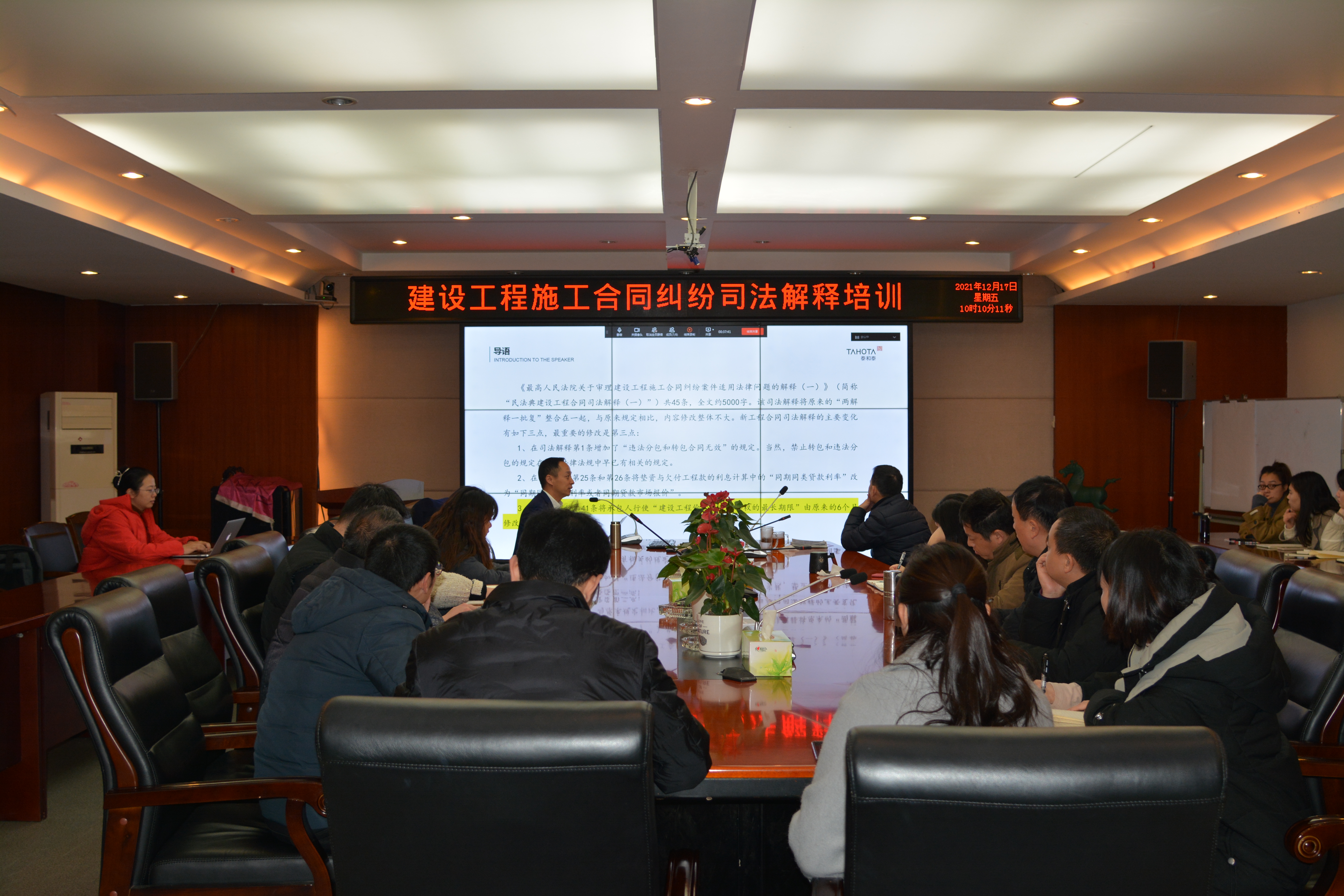 自2021年1月1日起,《最高人民法院关于审理建设工程施工合同纠纷案件适用法律问题的解释(一)》施行。为帮助各部门、各业务区人员更好地理解和掌握相关条款,助力公司工程总承包、司法鉴定(造价业务)等业务的开展,2021年12月17日,公司特邀请法律顾问邱泽龙律师就“建设工程施工合同司法解释”作专题解读培训。培训以现场+钉钉视频会议的形式举行,集团各业务区、各部门相关人员近30人参加了本次培训。