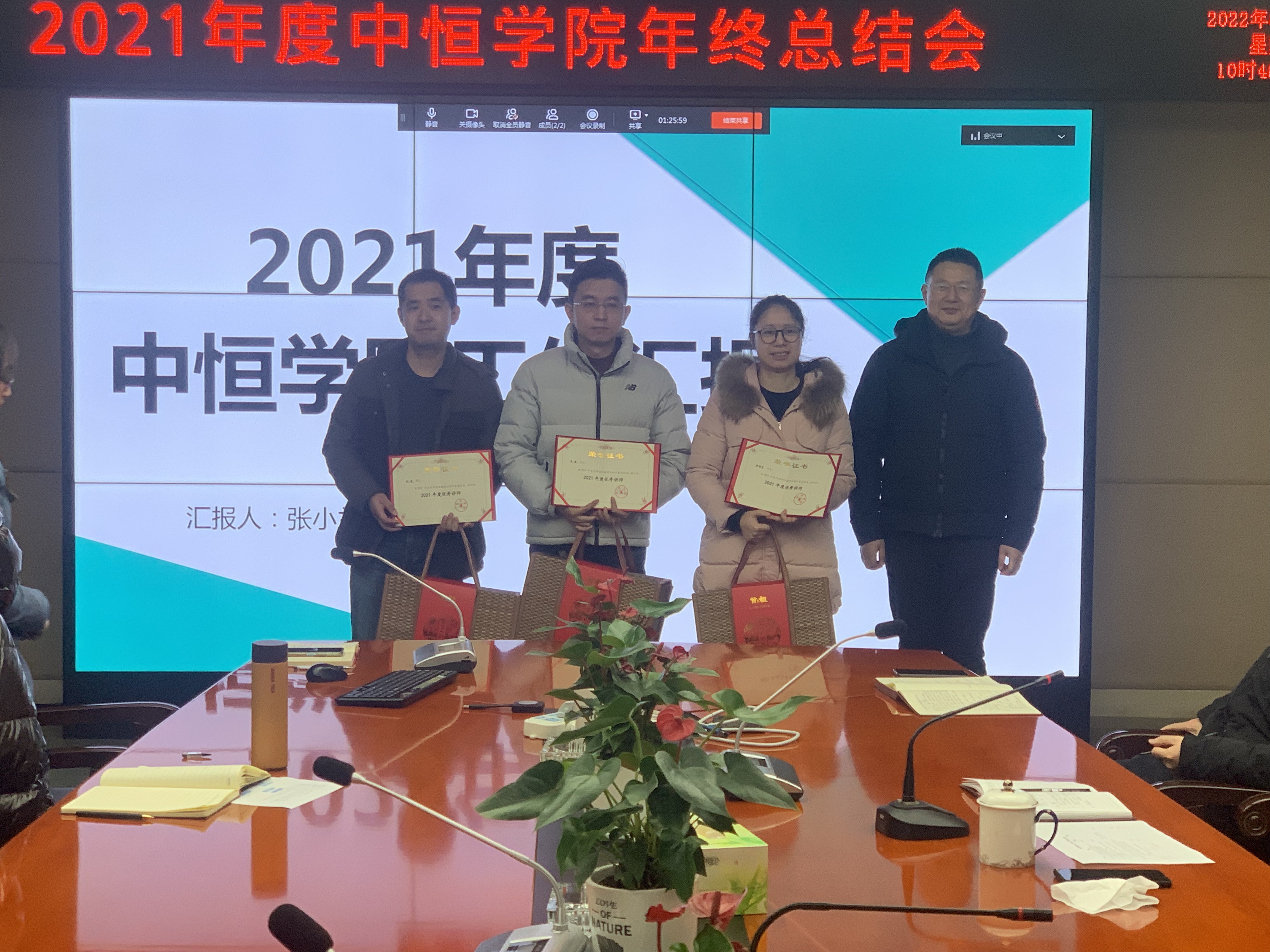 总结会上还对2021年度在学习活动和授课活动中表现优秀的员工/讲师进行了现场表彰,肖春同志荣获2021年度学习达人称号,内部讲师刘峻、李晨、李诗宇三位同志荣获2021年度优秀讲师称号。