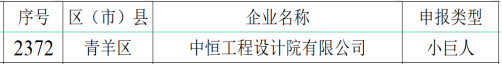 11月14日,成都市经济和信息化局发布了“关于公布2022年度成都市中小企业成长工程培育企业名单的通知”,凯发k8天生赢家一触即发工程设计院有限公司连续四年成功入选成都市中小企业成长工程培育企业——小巨人企业。